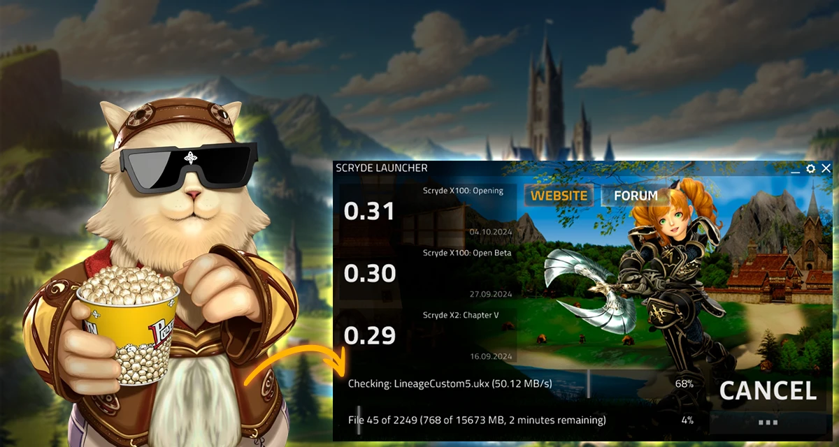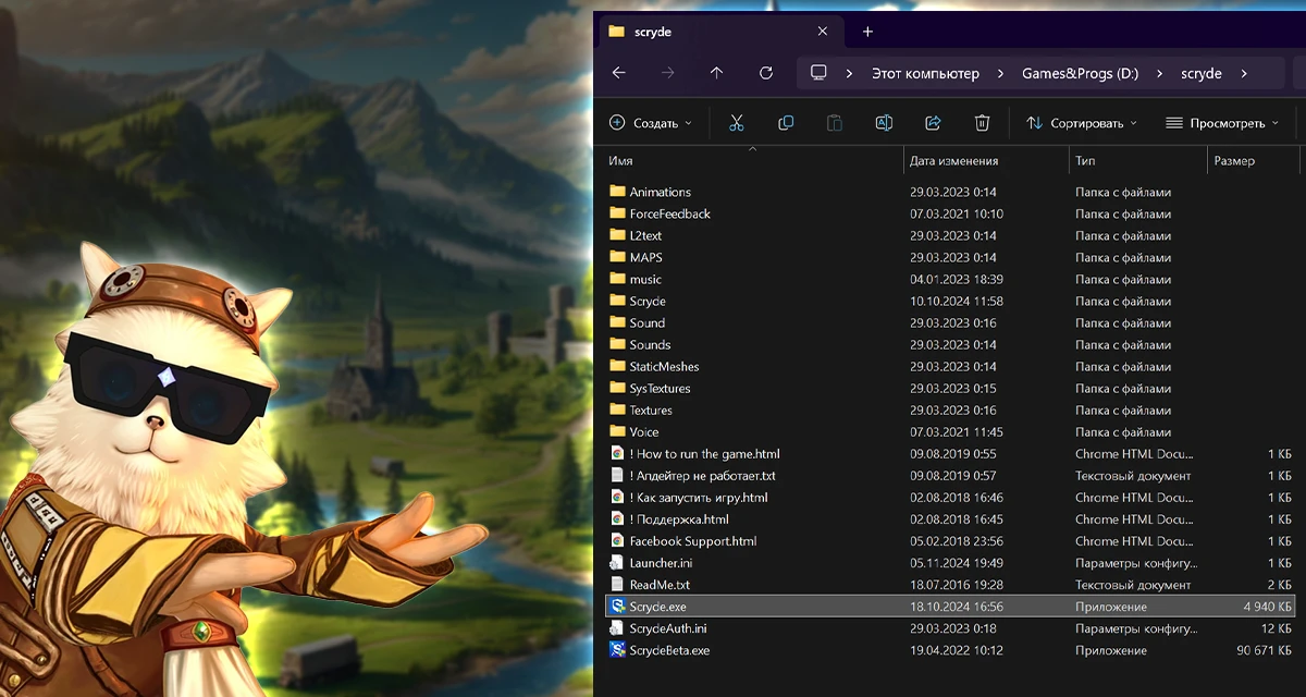 Or start the game via launcher Scryde.exe. Choose a folder, and the launcher will do everything — download and install the game.